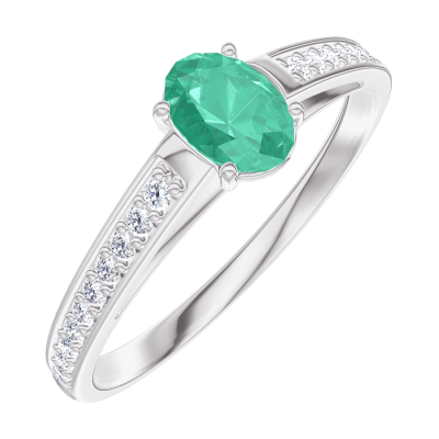 « L'ATELIER » Nº 162107Bague Or blanc 18 carats - Émeraude Ovale 0.3 carat - Sertissage Diamant 5 (3)