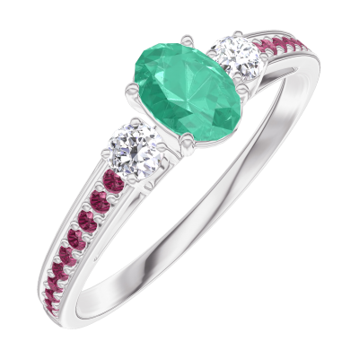 « L'ATELIER » Nº162131Bague Or blanc 18 carats - Émeraude Ovale 0.3 carat - Pierres de côté Diamant - Sertissage Rubis 5 (3)