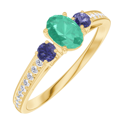 « L'ATELIER » Nº 162165Bague Or jaune 18 carats - Émeraude Ovale 0.3 carat - Pierres de côté Saphir bleu - Sertissage Diamant 5 (3)