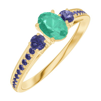 « L'ATELIER » Nº162174Bague Or jaune 9 carats - Émeraude Ovale 0.3 carat - Pierres de côté Saphir bleu - Sertissage Saphir bleu 5 (3)