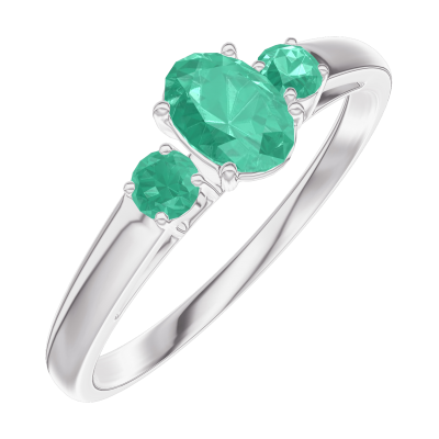« L'ATELIER » Nº162184Bague Or blanc 9 carats - Émeraude Ovale 0.3 carat - Pierres de côté Émeraude 5 (3)