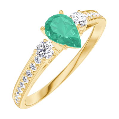 « L'ATELIER » Nº 162225Bague Or jaune 18 carats - Émeraude Poire 0.3 carat - Pierres de côté Diamant - Sertissage Diamant