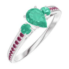 « L'ATELIER » Nº 162292Bague Or blanc 9 carats - Émeraude Poire 0.3 carat - Pierres de côté Émeraude - Sertissage Rubis