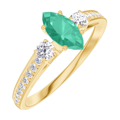 « L'ATELIER » Nº 162326Bague Or jaune 9 carats - Émeraude Marquise 0.3 carat - Pierres de côté Diamant - Sertissage Diamant