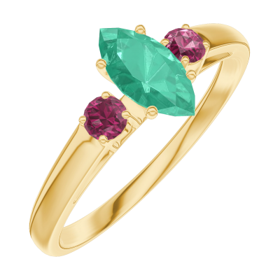 « L'ATELIER » Nº162342Bague Or jaune 9 carats - Émeraude Marquise 0.3 carat - Pierres de côté Rubis