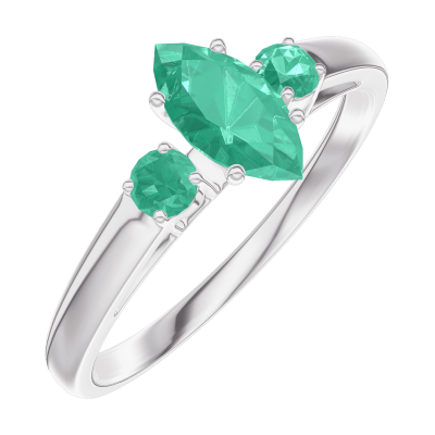 « L'ATELIER » Nº162384Bague Or blanc 9 carats - Émeraude Marquise 0.3 carat - Pierres de côté Émeraude