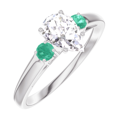 « L'ATELIER » Nº162884Bague Or blanc 9 carats - Diamant Poire 0.5 carat - Pierres de côté Émeraude