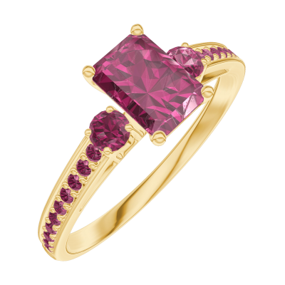 « L'ATELIER » Nº163249Bague Or jaune 18 carats - Rubis Rectangle 0.5 carat - Pierres de côté Rubis - Sertissage Rubis