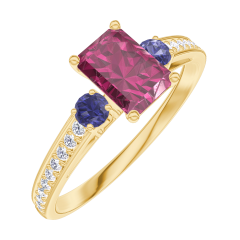 « L'ATELIER » Nº 163265Bague Or jaune 18 carats - Rubis Rectangle 0.5 carat - Pierres de côté Saphir bleu - Sertissage Diamant