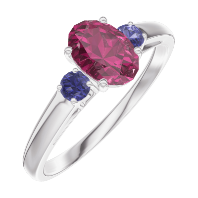 « L'ATELIER » Nº163364Bague Or blanc 9 carats - Rubis Ovale 0.5 carat - Pierres de côté Saphir bleu
