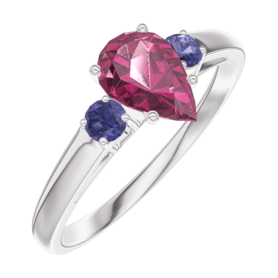 « L'ATELIER » Nº163464Bague Or blanc 9 carats - Rubis Poire 0.5 carat - Pierres de côté Saphir bleu