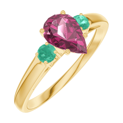 « L'ATELIER » Nº 163481Bague Or jaune 18 carats - Rubis Poire 0.5 carat - Pierres de côté Émeraude