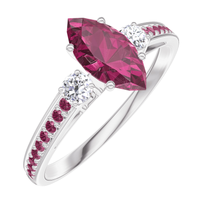 « L'ATELIER » Nº 163532Bague Or blanc 9 carats - Rubis Marquise 0.5 carat - Pierres de côté Diamant - Sertissage Rubis