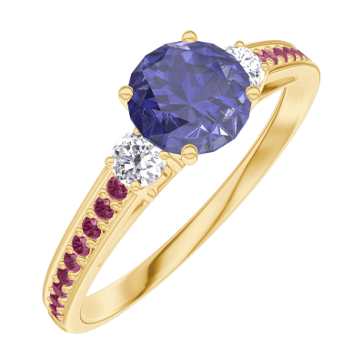 « L'ATELIER » Nº163629Bague Or jaune 18 carats - Saphir bleu Rond 0.5 carat - Pierres de côté Diamant - Sertissage Rubis 4.5 (16)