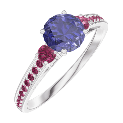 « L'ATELIER » Nº163651Bague Or blanc 18 carats - Saphir bleu Rond 0.5 carat - Pierres de côté Rubis - Sertissage Rubis 4.5 (15)