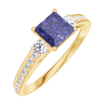 « L'ATELIER » Nº 163726Bague Or jaune 9 carats - Saphir bleu Princesse 0.5 carat - Pierres de côté Diamant - Sertissage Diamant