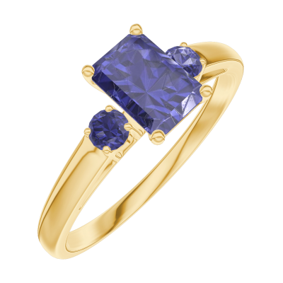 « L'ATELIER » Nº163862Bague Or jaune 9 carats - Saphir bleu Rectangle 0.5 carat - Pierres de côté Saphir bleu