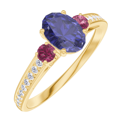 « L'ATELIER » Nº163945Bague Or jaune 18 carats - Saphir bleu Ovale 0.5 carat - Pierres de côté Rubis - Sertissage Diamant
