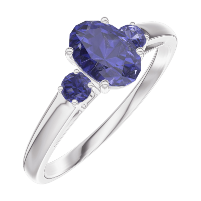 « L'ATELIER » Nº 163964Bague Or blanc 9 carats - Saphir bleu Ovale 0.5 carat - Pierres de côté Saphir bleu