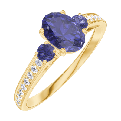 « L'ATELIER » Nº163965Bague Or jaune 18 carats - Saphir bleu Ovale 0.5 carat - Pierres de côté Saphir bleu - Sertissage Diamant