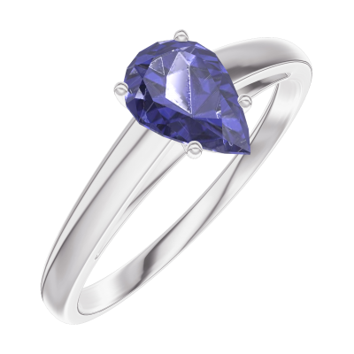« L'ATELIER » Nº164004Bague Or blanc 9 carats - Saphir bleu Poire 0.5 carat