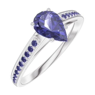 « L'ATELIER » Nº164016Bague Or blanc 9 carats - Saphir bleu Poire 0.5 carat - Sertissage Saphir bleu