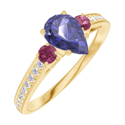 « L'ATELIER » Nº164045Bague Or jaune 18 carats - Saphir bleu Poire 0.5 carat - Pierres de côté Rubis - Sertissage Diamant