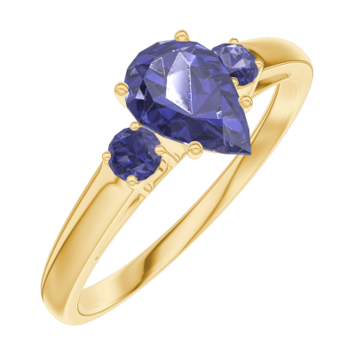 « L'ATELIER » Nº164061Bague Or jaune 18 carats - Saphir bleu Poire 0.5 carat - Pierres de côté Saphir bleu