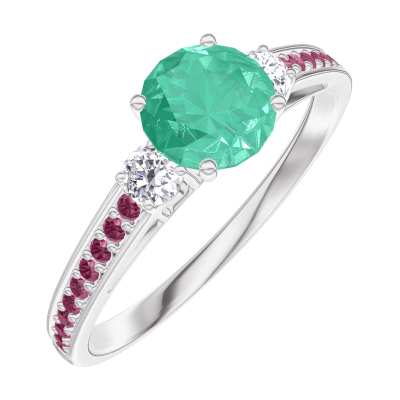 « L'ATELIER » Nº164232Bague Or blanc 9 carats - Émeraude Rond 0.5 carat - Pierres de côté Diamant - Sertissage Rubis 4.5 (16)