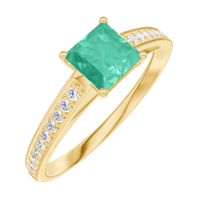 « L'ATELIER » Nº 164305Bague Or jaune 18 carats - Émeraude Princesse 0.5 carat - Sertissage Diamant