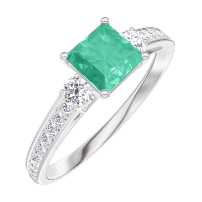 « L'ATELIER » Nº 164328Bague Or blanc 9 carats - Émeraude Princesse 0.5 carat - Pierres de côté Diamant - Sertissage Diamant