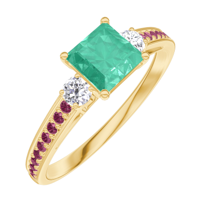 « L'ATELIER » Nº 164329Bague Or jaune 18 carats - Émeraude Princesse 0.5 carat - Pierres de côté Diamant - Sertissage Rubis