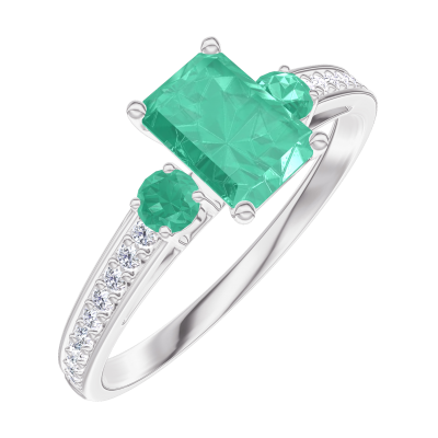 « L'ATELIER » Nº 164488Bague Or blanc 9 carats - Émeraude Rectangle 0.5 carat - Pierres de côté Émeraude - Sertissage Diamant