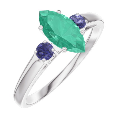 « L'ATELIER » Nº164763Bague Or blanc 18 carats - Émeraude Marquise 0.5 carat - Pierres de côté Saphir bleu