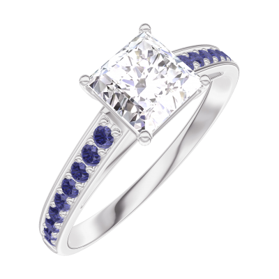 « L'ATELIER » Nº164916Bague Or blanc 9 carats - Diamant Princesse 0.7 carat - Sertissage Saphir bleu