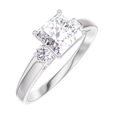« L'ATELIER » Nº 164924Bague Or blanc 9 carats - Diamant Princesse 0.7 carat - Pierres de côté Diamant