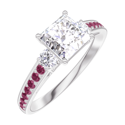 « L'ATELIER » Nº164932Bague Or blanc 9 carats - Diamant Princesse 0.7 carat - Pierres de côté Diamant - Sertissage Rubis