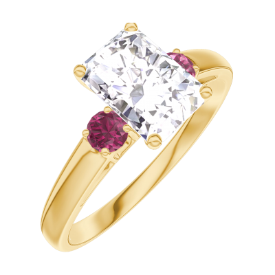 « L'ATELIER » Nº 165041Bague Or jaune 18 carats - Diamant Rectangle 0.7 carat - Pierres de côté Rubis