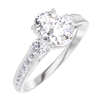 « L'ATELIER » Nº 165128Bague Or blanc 9 carats - Diamant Ovale 0.7 carat - Pierres de côté Diamant - Sertissage Diamant