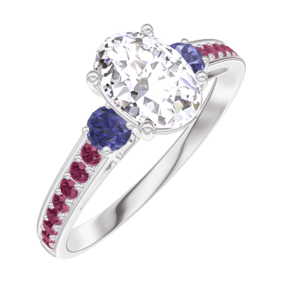 « L'ATELIER » Nº 165171Bague Or blanc 18 carats - Diamant Ovale 0.7 carat - Pierres de côté Saphir bleu - Sertissage Rubis