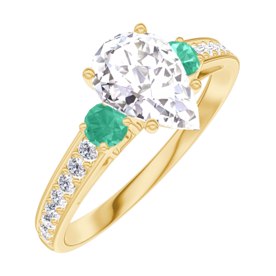 « L'ATELIER » Nº165286Bague Or jaune 9 carats - Diamant Poire 0.7 carat - Pierres de côté Émeraude - Sertissage Diamant