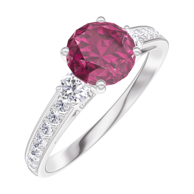 « L'ATELIER » Nº 165428Bague Or blanc 9 carats - Rubis Rond 0.7 carat - Pierres de côté Diamant - Sertissage Diamant 4.9 (7)