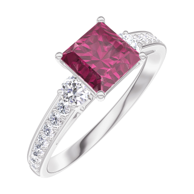 « L'ATELIER » Nº 165527Bague Or blanc 18 carats - Rubis Princesse 0.7 carat - Pierres de côté Diamant - Sertissage Diamant