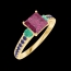 Bague Or jaune 18 carats - Rubis Princesse 0.7 carat - Pierres de côté Émeraude - Sertissage Saphir bleu