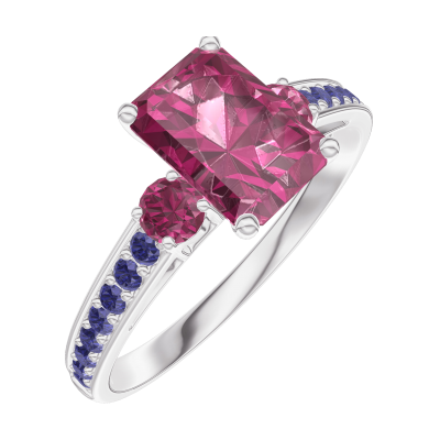 « L'ATELIER » Nº165655Bague Or blanc 18 carats - Rubis Rectangle 0.7 carat - Pierres de côté Rubis - Sertissage Saphir bleu