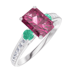 « L'ATELIER » Nº 165688Bague Or blanc 9 carats - Rubis Rectangle 0.7 carat - Pierres de côté Émeraude - Sertissage Diamant