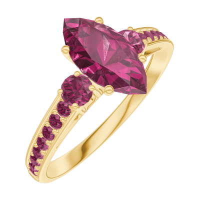 « L'ATELIER » Nº165950Bague Or jaune 9 carats - Rubis Marquise 0.7 carat - Pierres de côté Rubis - Sertissage Rubis