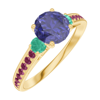 « L'ATELIER » Nº 166089Bague Or jaune 18 carats - Saphir bleu Rond 0.7 carat - Pierres de côté Émeraude - Sertissage Rubis 4.9 (7)