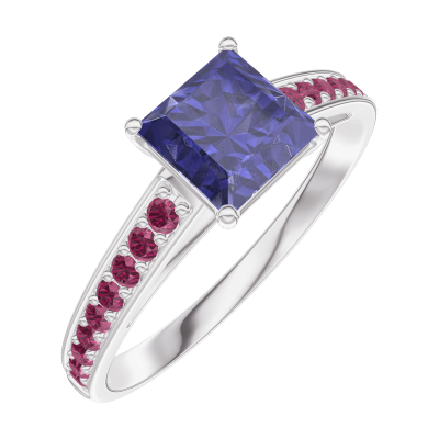 « L'ATELIER » Nº166112Bague Or blanc 9 carats - Saphir bleu Princesse 0.7 carat - Sertissage Rubis