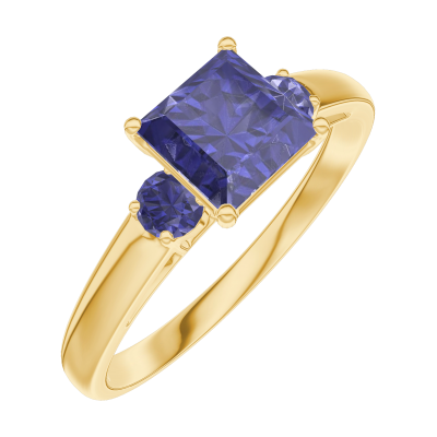 « L'ATELIER » Nº166162Bague Or jaune 9 carats - Saphir bleu Princesse 0.7 carat - Pierres de côté Saphir bleu